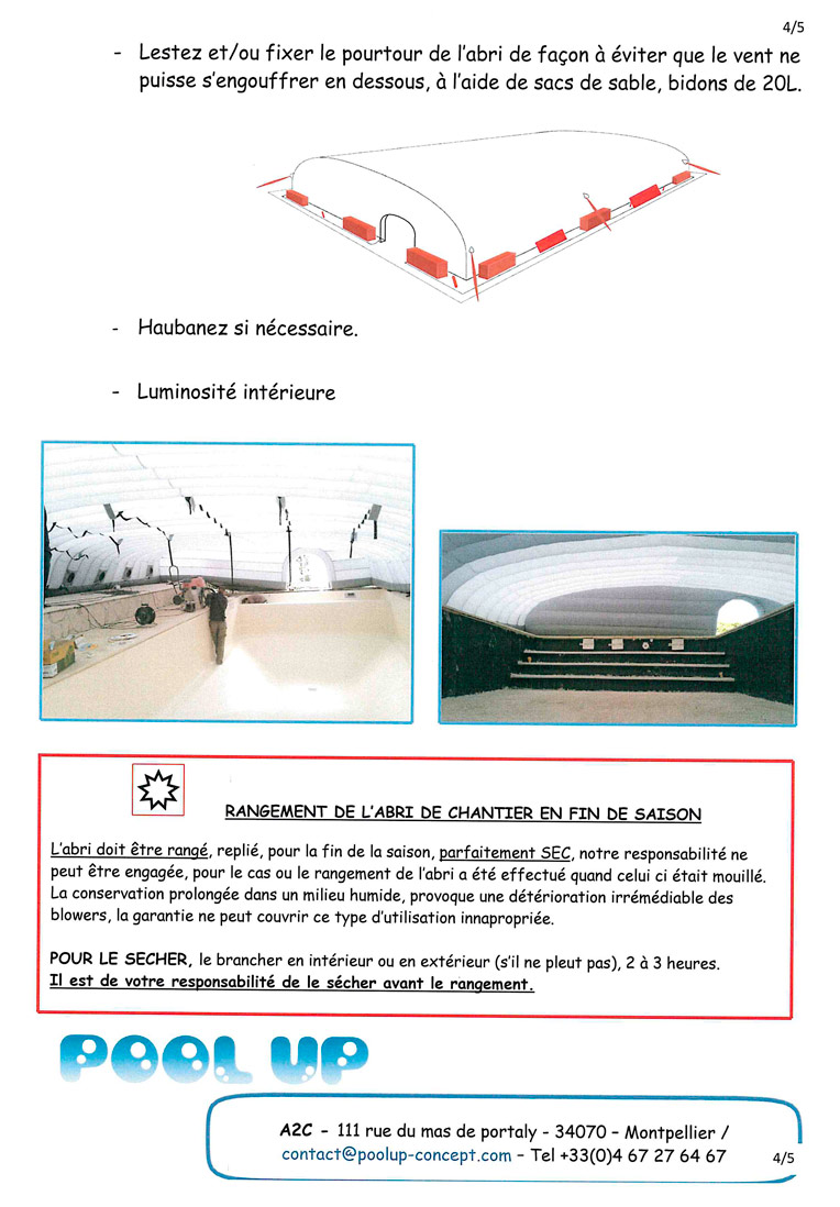 Il est facile à transporter, il tient aisément dans le coffre d’un break. Facilement manipulable, il est rapidement mis en place par 2 personnes (5mn). Ainsi, vous pourrez installer votre abri de chantier Poolup rapidement.